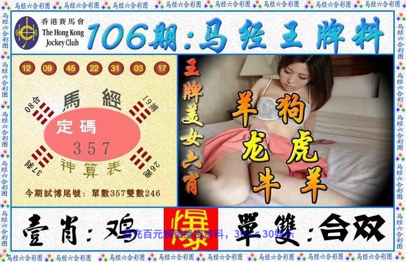 109期:六合三怪/内部平特诀/独家六合玄机/六合对诀/波色输尽光